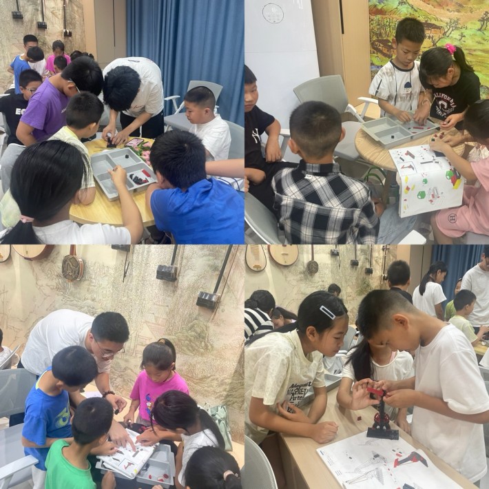 活动伊始,志愿者向孩子们介绍慧鱼机器人的基本原理和操作方法,科普慧鱼机器人与乐高的区别,展示大学生自己搭建的全自动芋头种植机。然后分组让孩子们亲手拼装、调试属于自己的机器人。在拼装过程中,志愿者耐心地解答孩子们的疑问,指导他们如何选择合适零件、如何连接电路、如何调试程序。在孩子们的努力下,一个个小巧的机器人逐渐成型,孩子们的脸上露出成功的喜悦。